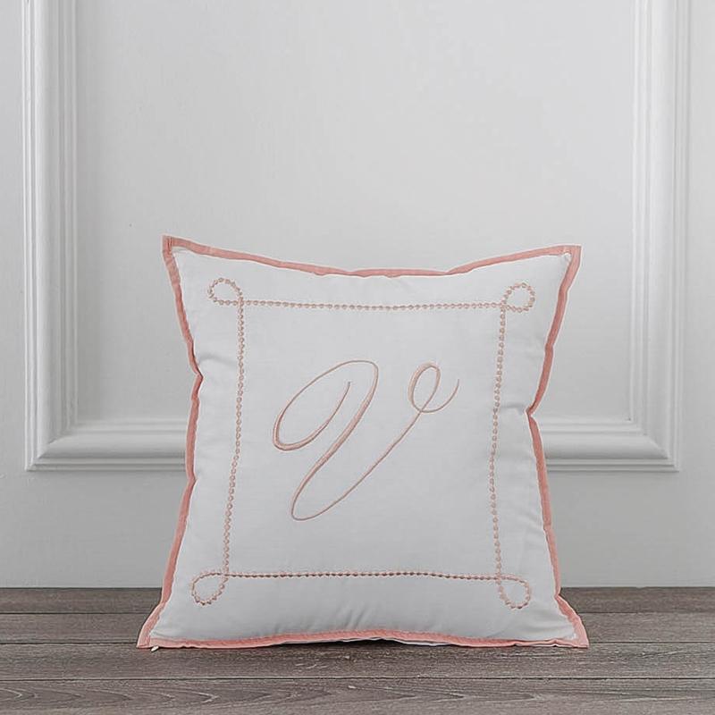 100% SATEEN COTTON EMBROIDERED GREY DOTS PINK DECORATIVE PILLOW